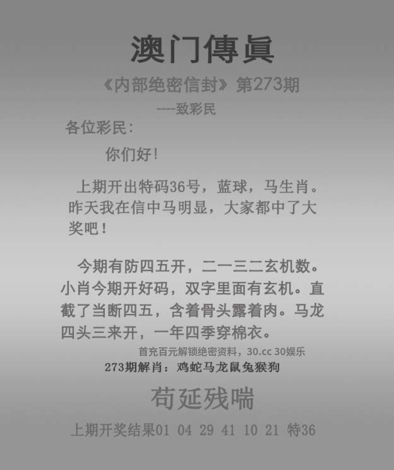 275期:三季中特★【冬春秋】开:鸡45准 |
