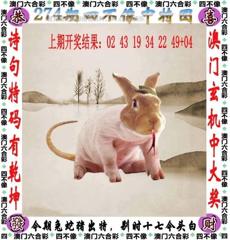 273期:【千王之解四不像】今期猴鼠蛇出特,瑞气炉中金玉流。 【平尾】444尾 |