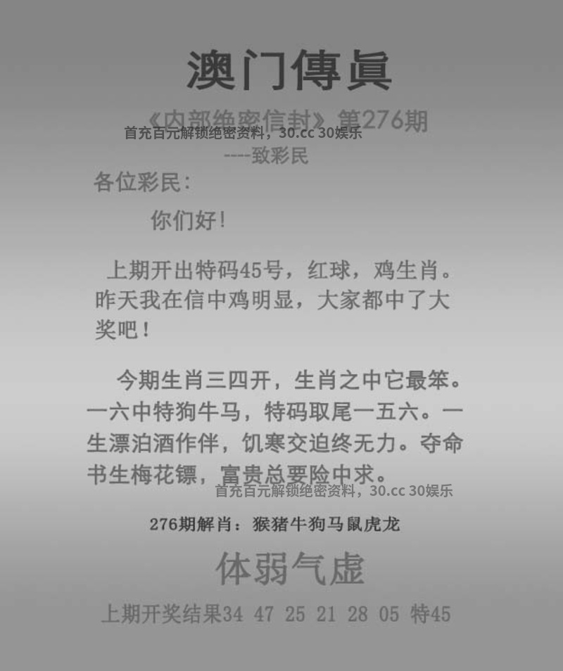 澳门马会传真(272期) 本期生肖二五开,二三门看特有钱 土木之数中特码,将军君王一声怒 变幻莫测显神功,一举两得猪中计 牛羊马猪中特奖,双喜临门一大篇 四面八方 解:今期将军君王一声怒,解君王生肖龙虎,一举两得猪中计,解凶丑生肖鼠牛虎猴狗猪。 拐特九肖:马鼠虎兔羊牛蛇猴鸡 主特:24.36.18.30.16.28.15.27.23.35.29.41.13.25.22.34.09.45 |